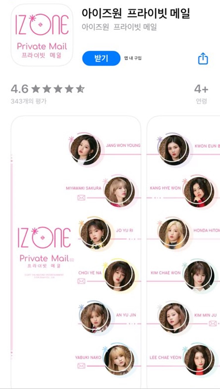 스마트폰에 유료 앱을 깔고 난 후 원하는 아이즈원 멤버를 선택해 직접 글과 사진을 메일 형태로 받아볼 수 있다.