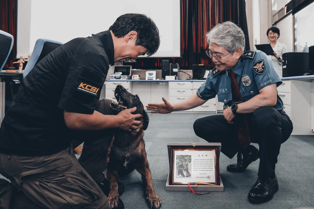부산경찰청이 야크의 공로를 인정해 표창장을 수여했습니다. 부산경찰 개청 이래 수색견에게 상을 준 건 처음입니다. 야크는 고기로 만든 케이크와 맛있는 간식을 부상으로 받았습니다.