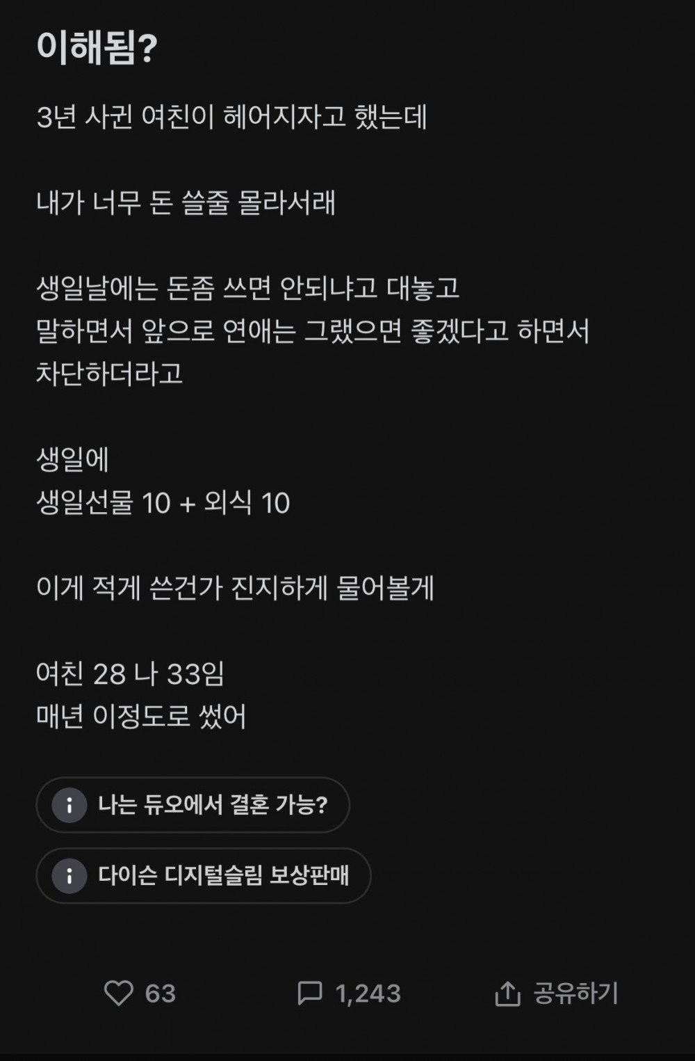 글쓴이는 연봉 5000 여자친구는 연봉 3000