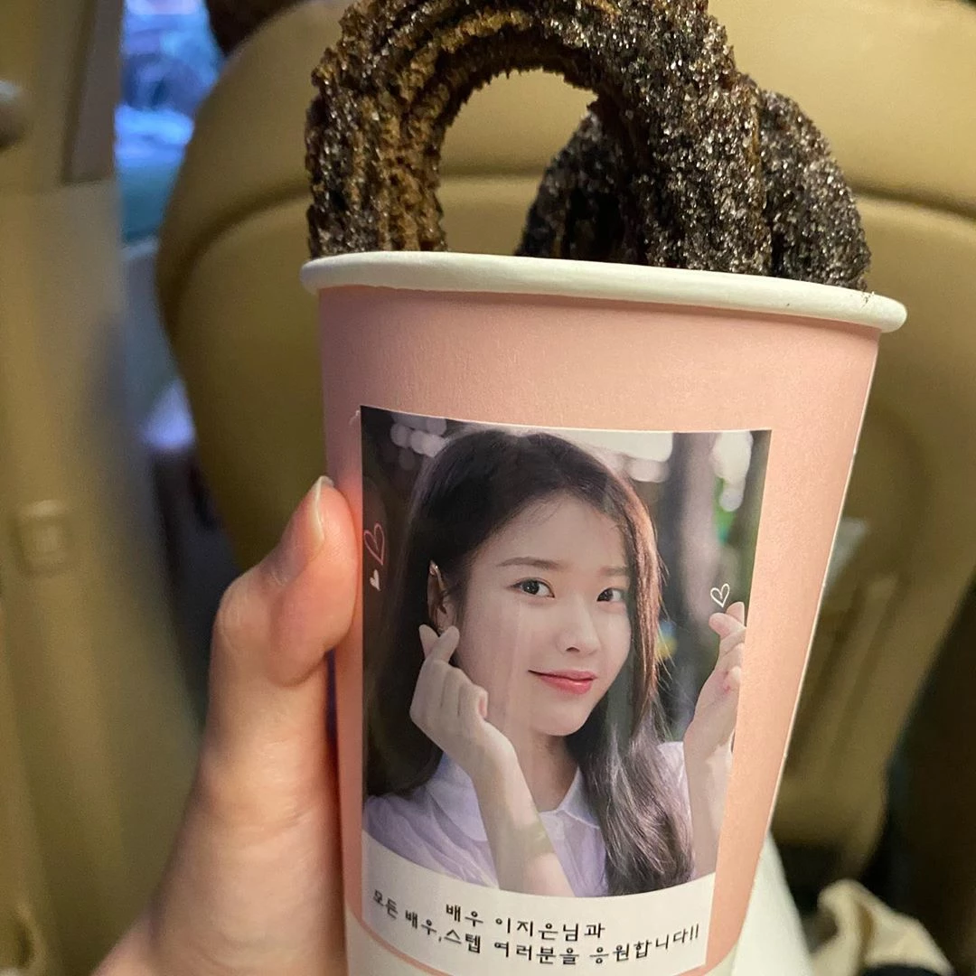 29일 아이유는 인스타그램에 사진 4장을 올렸다. 배경에 보이는 커피차는 그와 친한 연예인이 보내준 것이다.