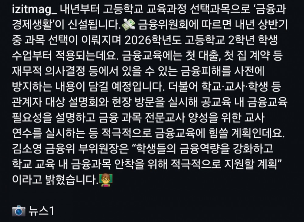 내년부터 고등학교서 금융, 대출,집계약 등등 배운다