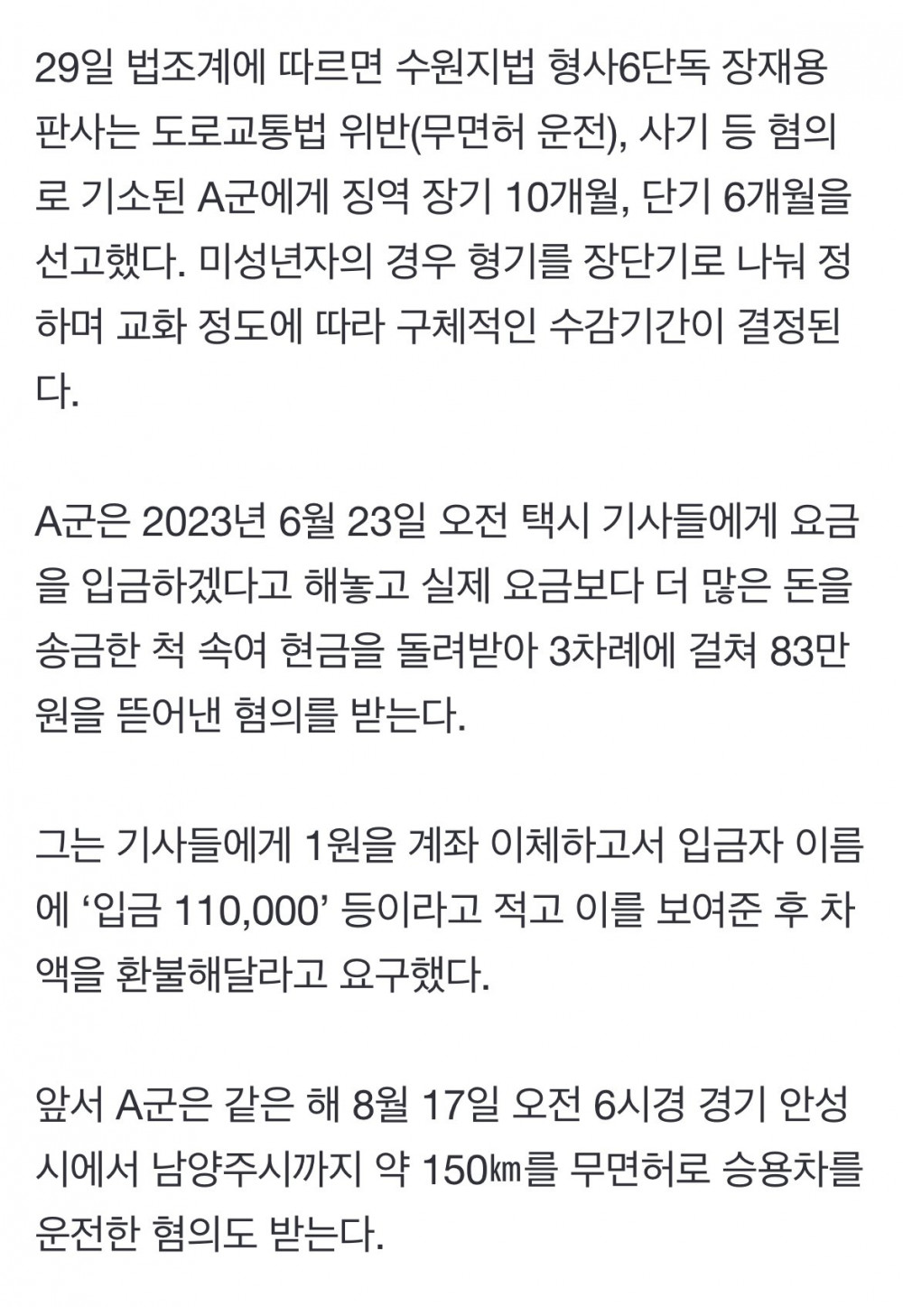 택시기사 돈 뜯어낸 중학생 징역