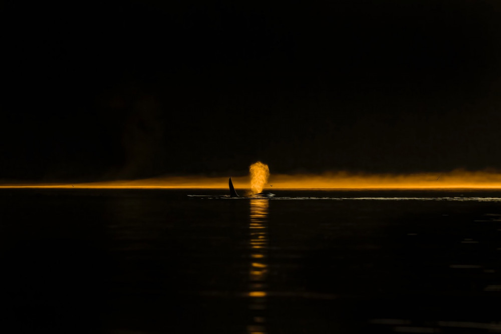 (범고래가 표면에서 숨 쉬는 장면임)