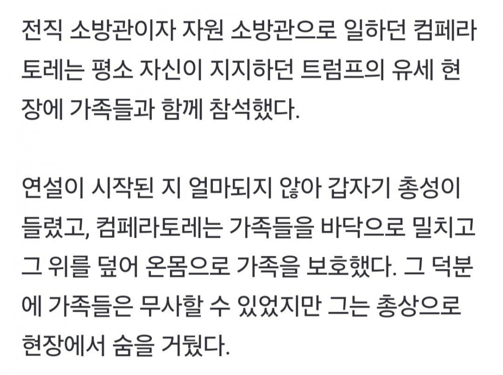 온 몸으로 아내와 딸을 감싸안은 채 사망한 전직 소방관
