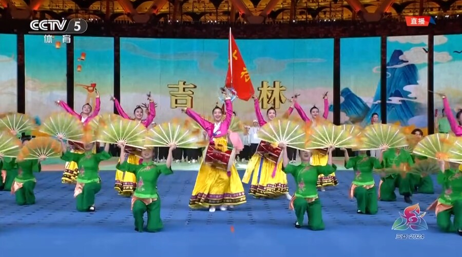부채춤과 상모돌리기를 대놓고 중화민족꺼라고 당당히 소개함.